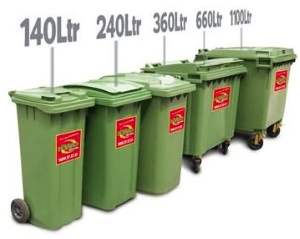 We offer a complete range of bins including 140ltr, 240ltr, 360ltr, 660ltr and 1100ltr which come colour coded for either landfill waste or recycling materials.